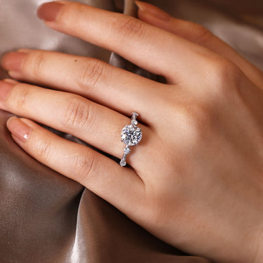 BRIAR Floral Inspired Moissanite Promise Ring Unique Engagement Ring With Leaf Band - Gold