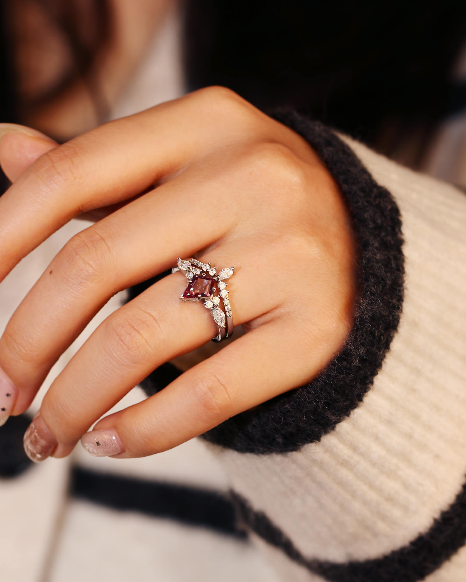 Kite Cut Lab Alexandrite Ring Set 2pcs Engagement Ring Moissanite Side Stone Wedding Band Ring Promise Bridal Anniversary Gift For Her