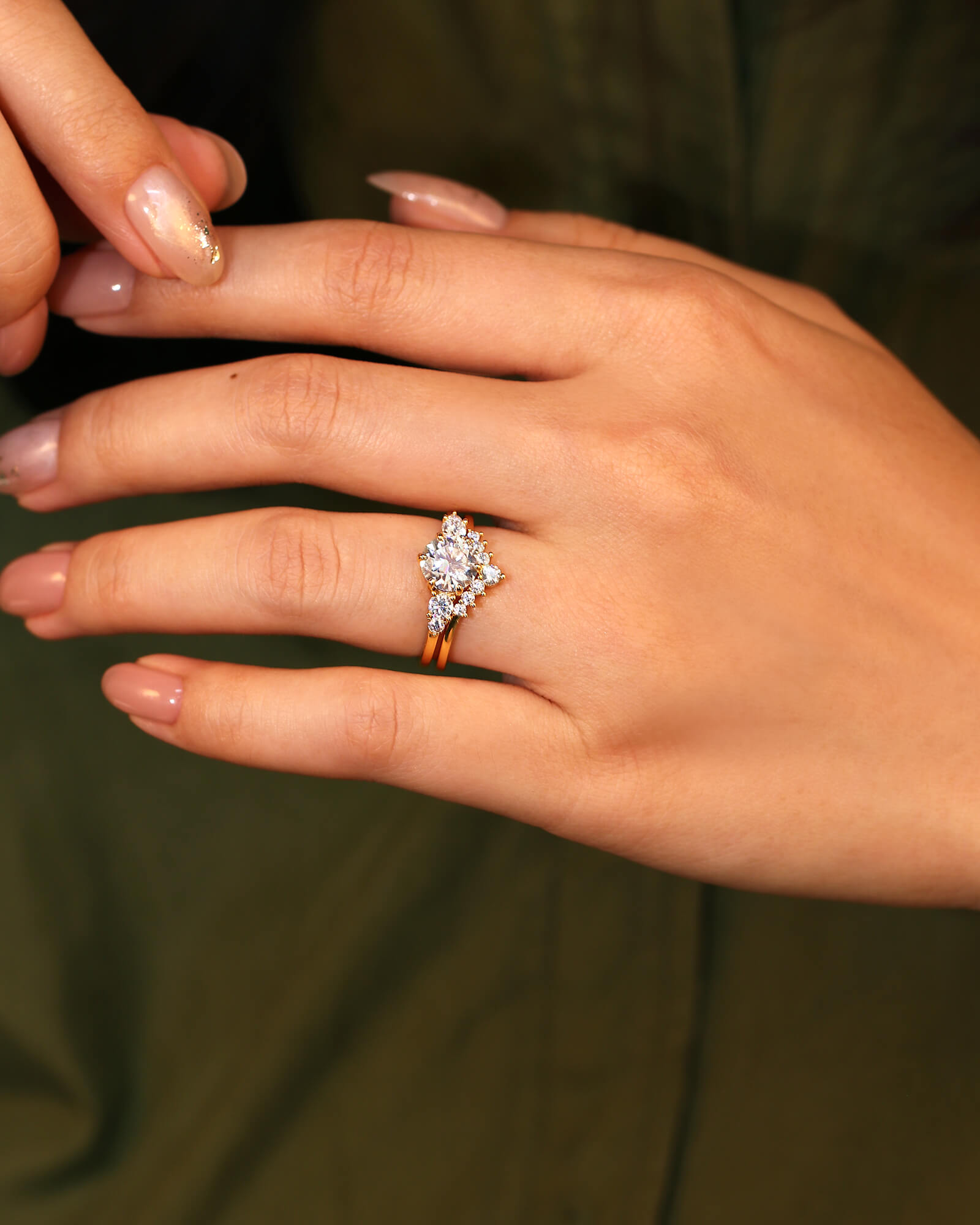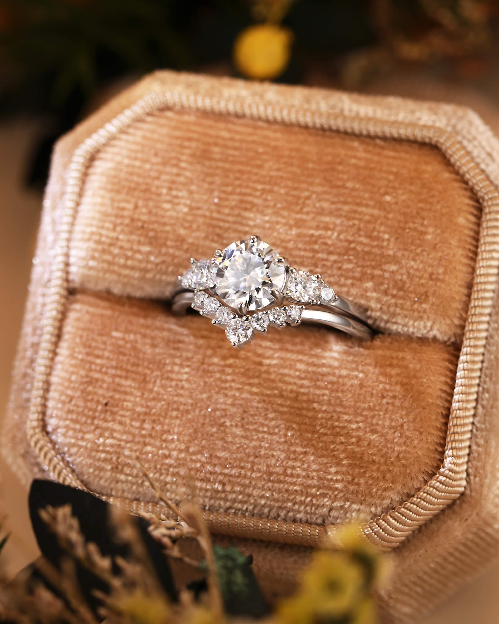 - Side Stone: Moissanite