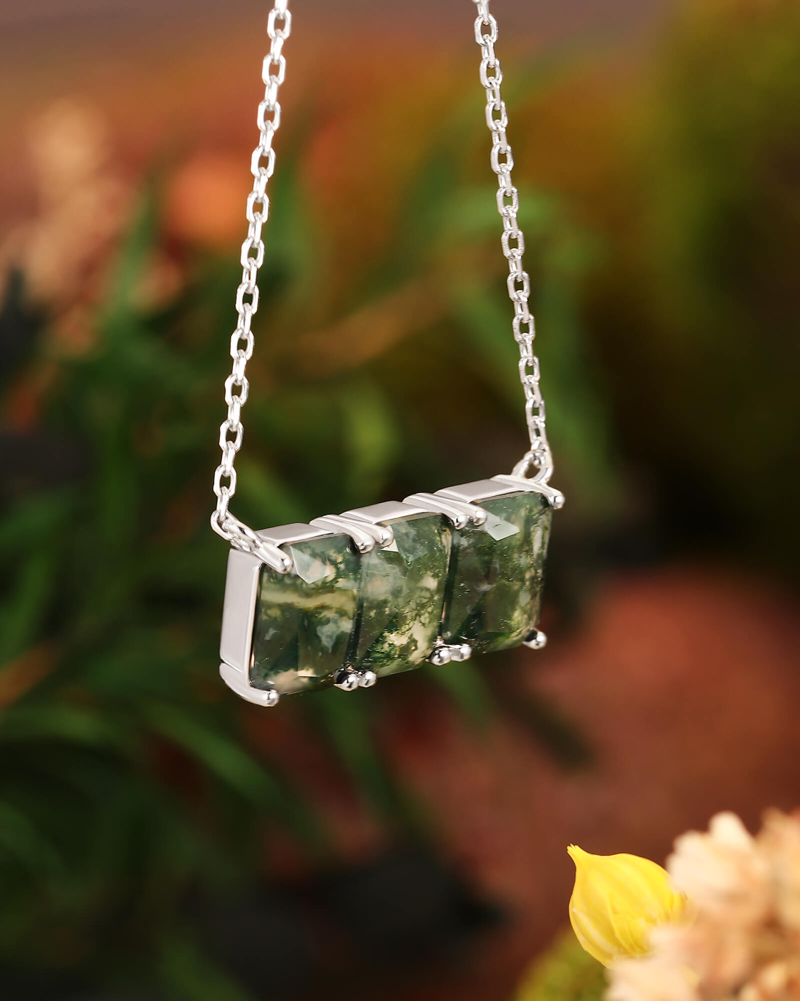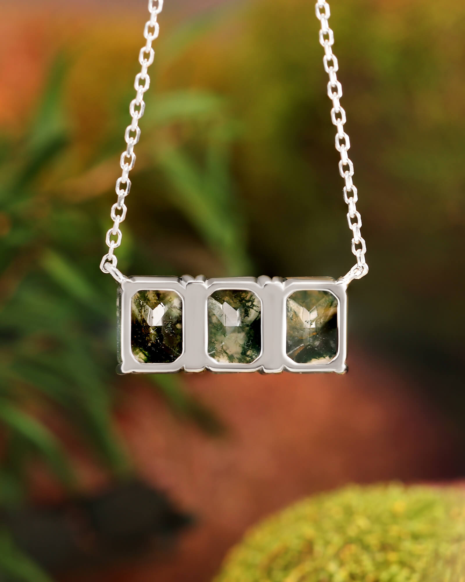 • Gemstone: Natural Moss Agate, Rectangle cut
