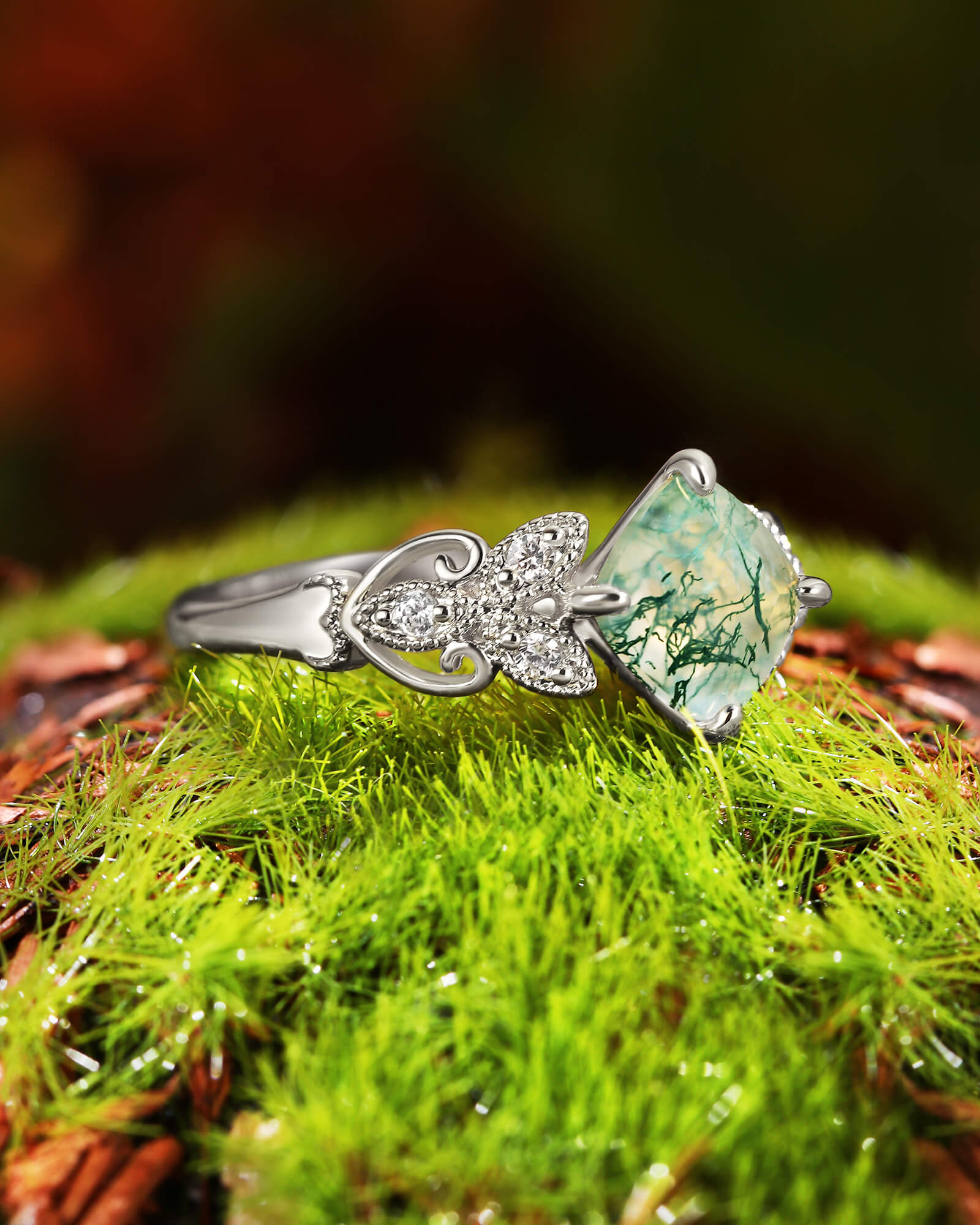 - Center Stone: Natural Moss Agate