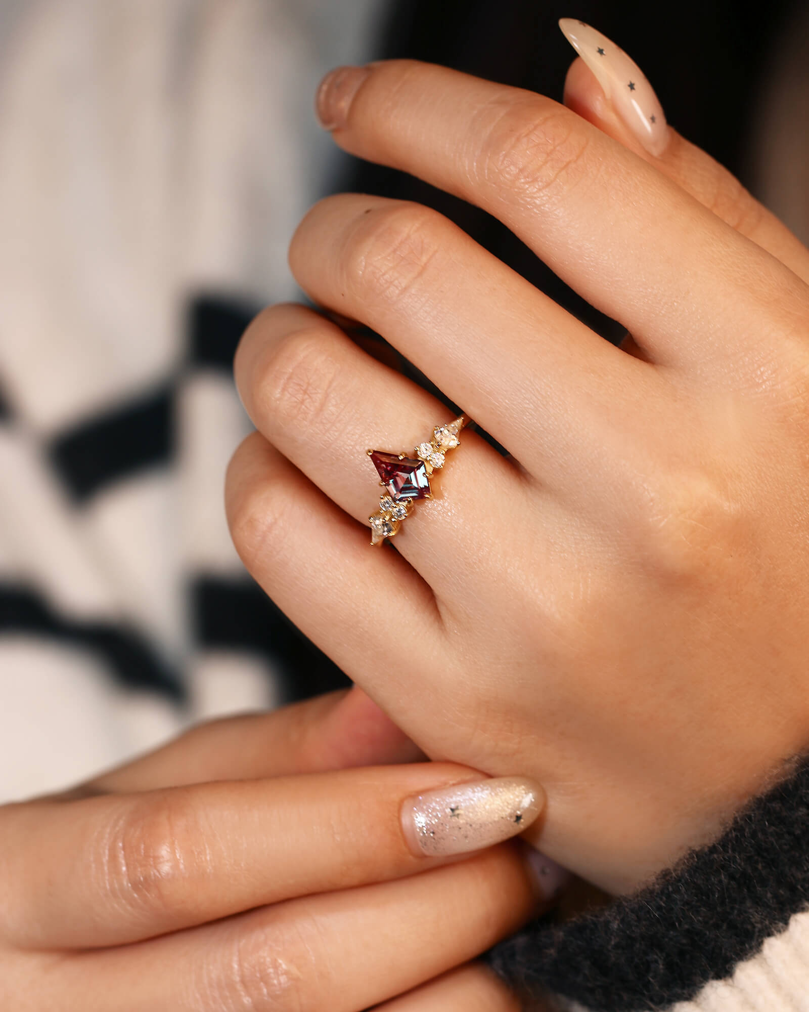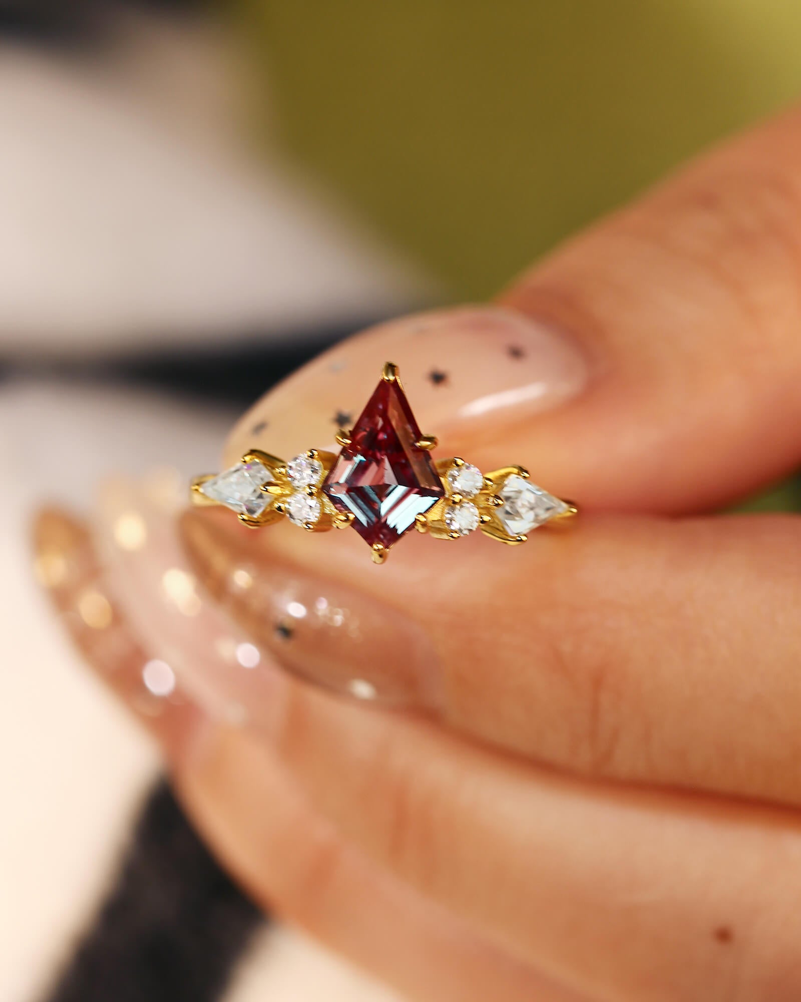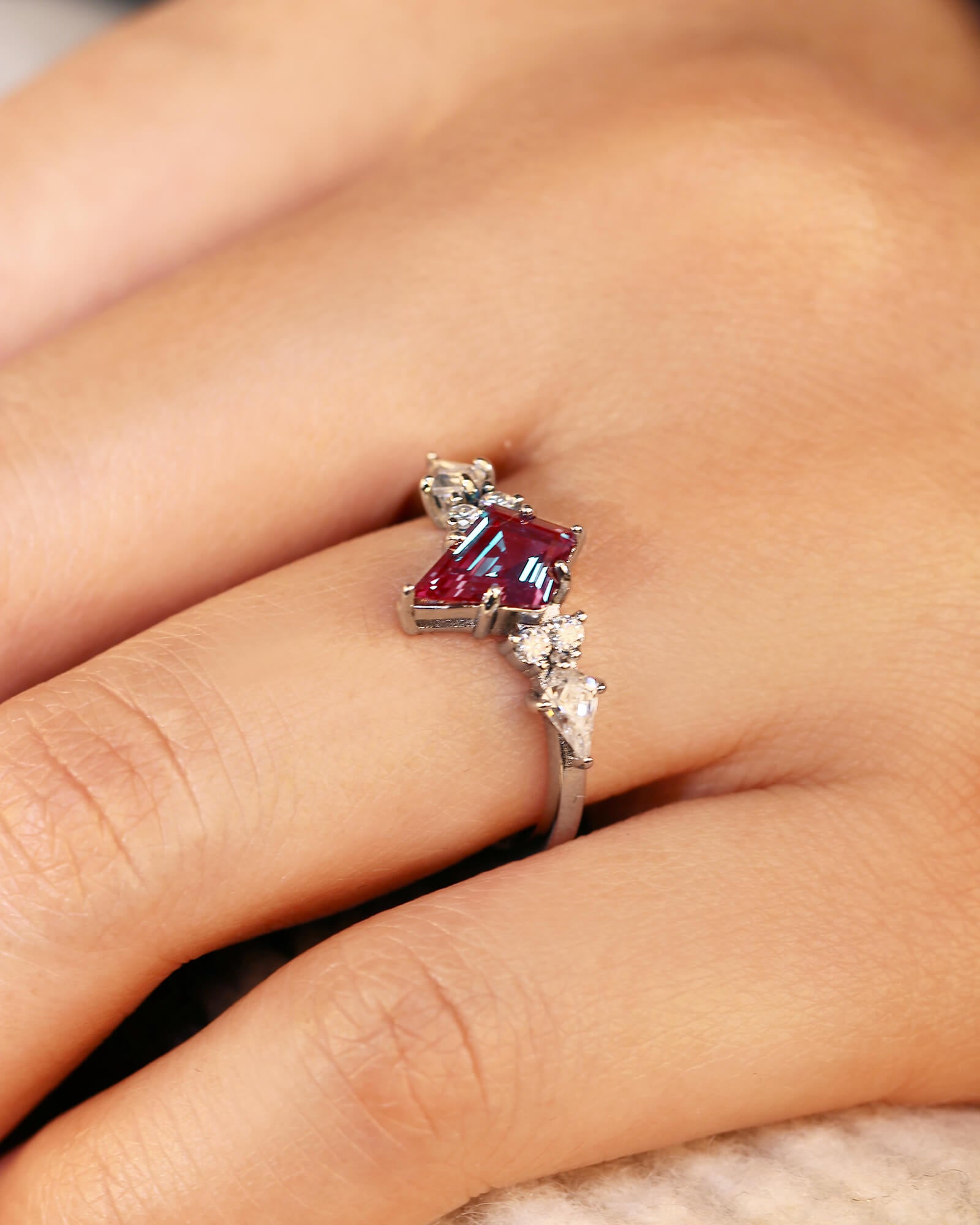 Unique Kite Cut Alexandrite Engagement Ring Moissanite Three Stone Ring Promise Bridal Anniversary Gift For Her