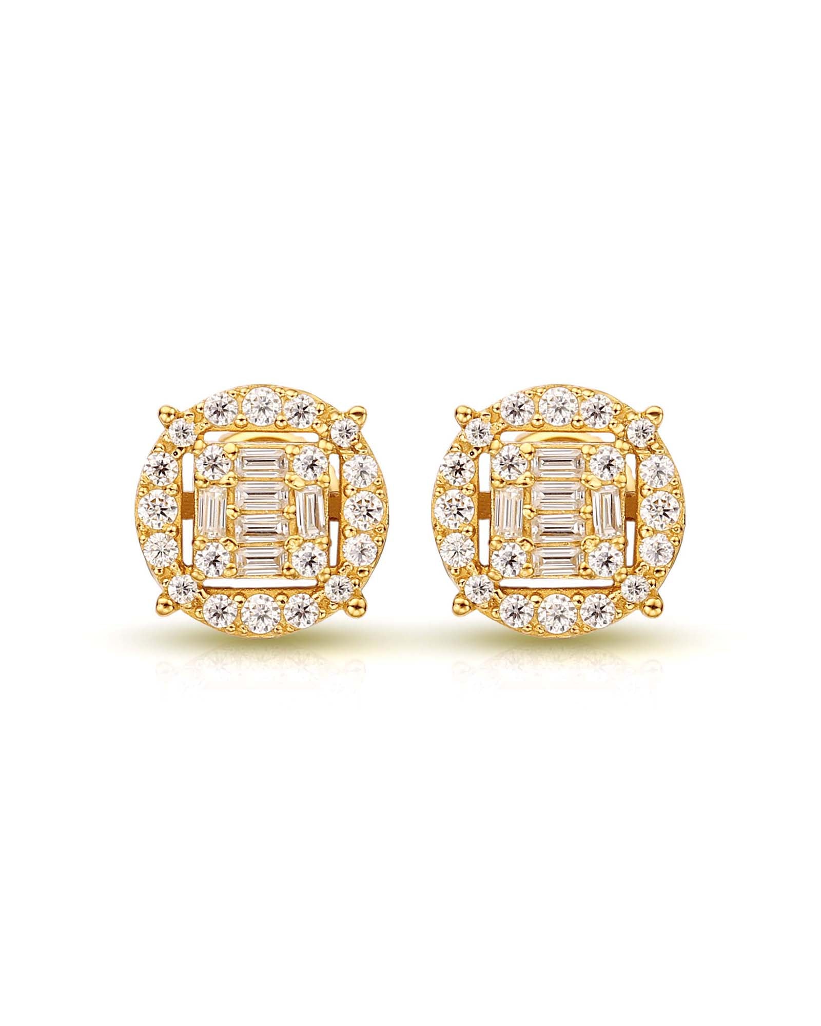 The ELLIE earrings are a captivating exploration of geometric harmony and negative space. Designed as a substantial 10mm circle, the outer frame is meticulously paved with brilliant round cut diamonds, creating a continuous band of radiance. Within this luminous circle lies a striking square cut-out, where emerald cut and round cut diamonds are artfully arranged, creating a captivating textural and visual contrast between the linear sparkle of the emerald cuts and the soft fire of the rounds.
