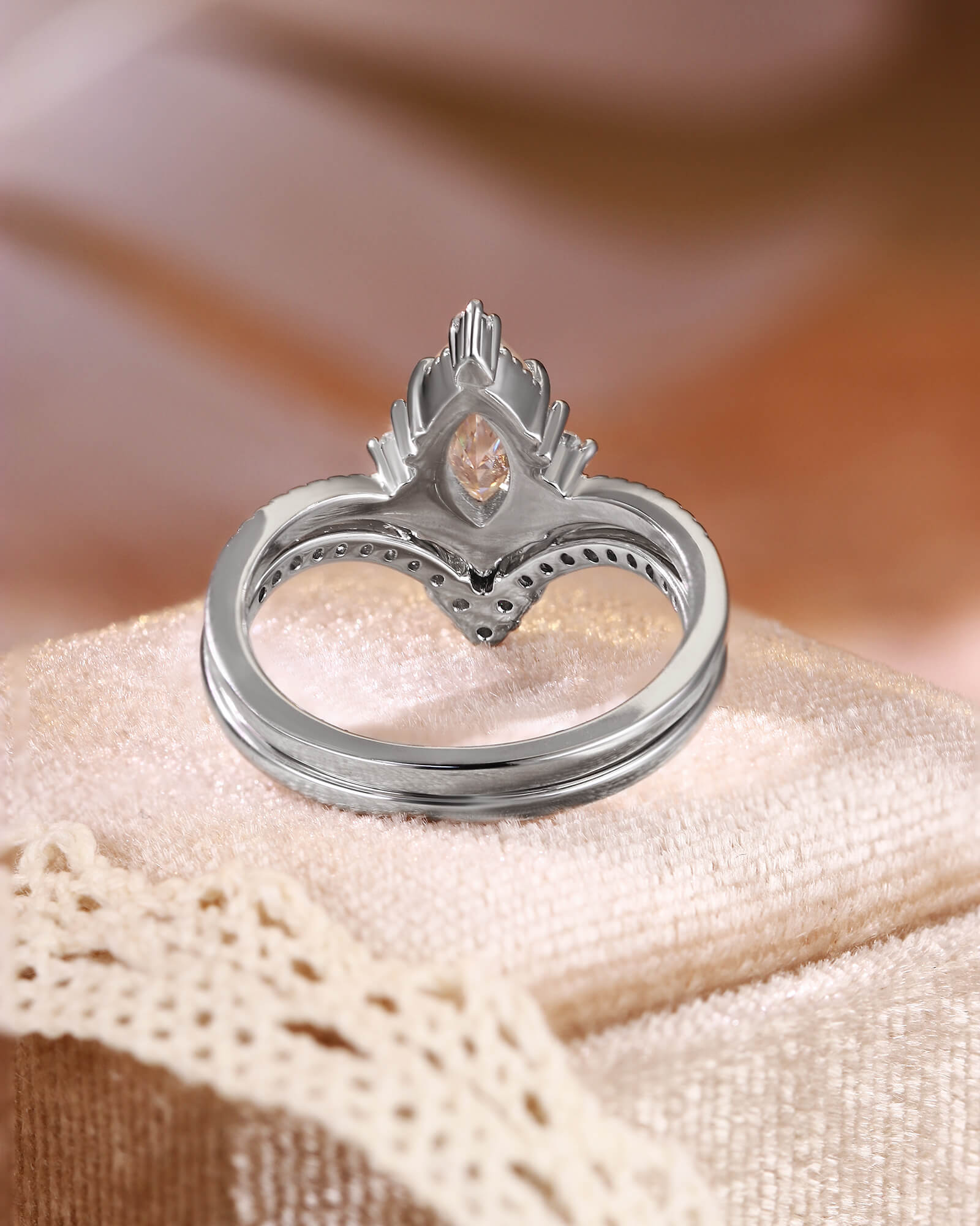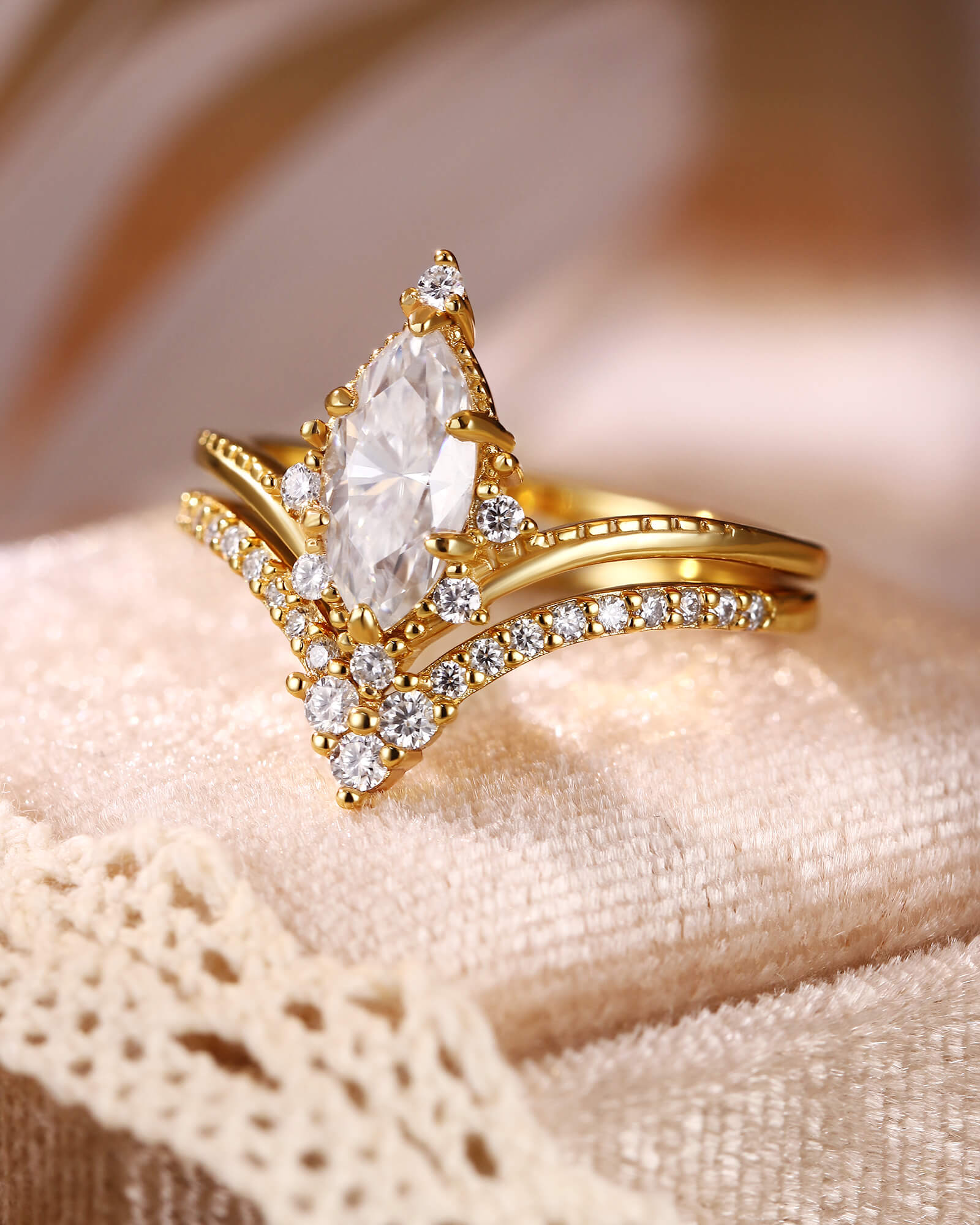 Art Deco Marquise Cut Moissanite Ring Set 2pcs Wedding Ring Moissanite Curved Band Ring Unique Ring Promise Bridal Anniversary Gift For Her