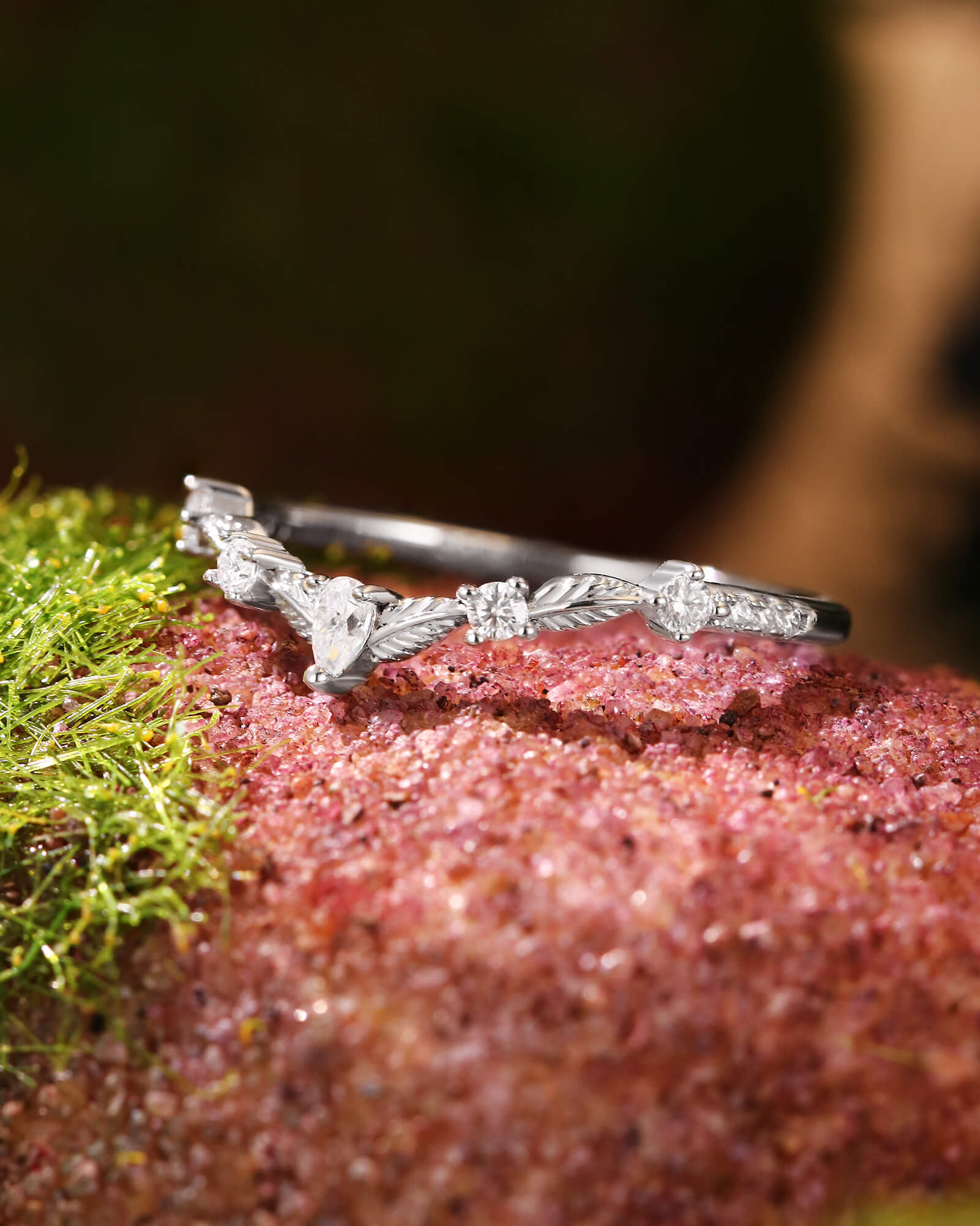 Leaf Design Nature Inspired Moissanite Wedding band Unique Stacking Ring