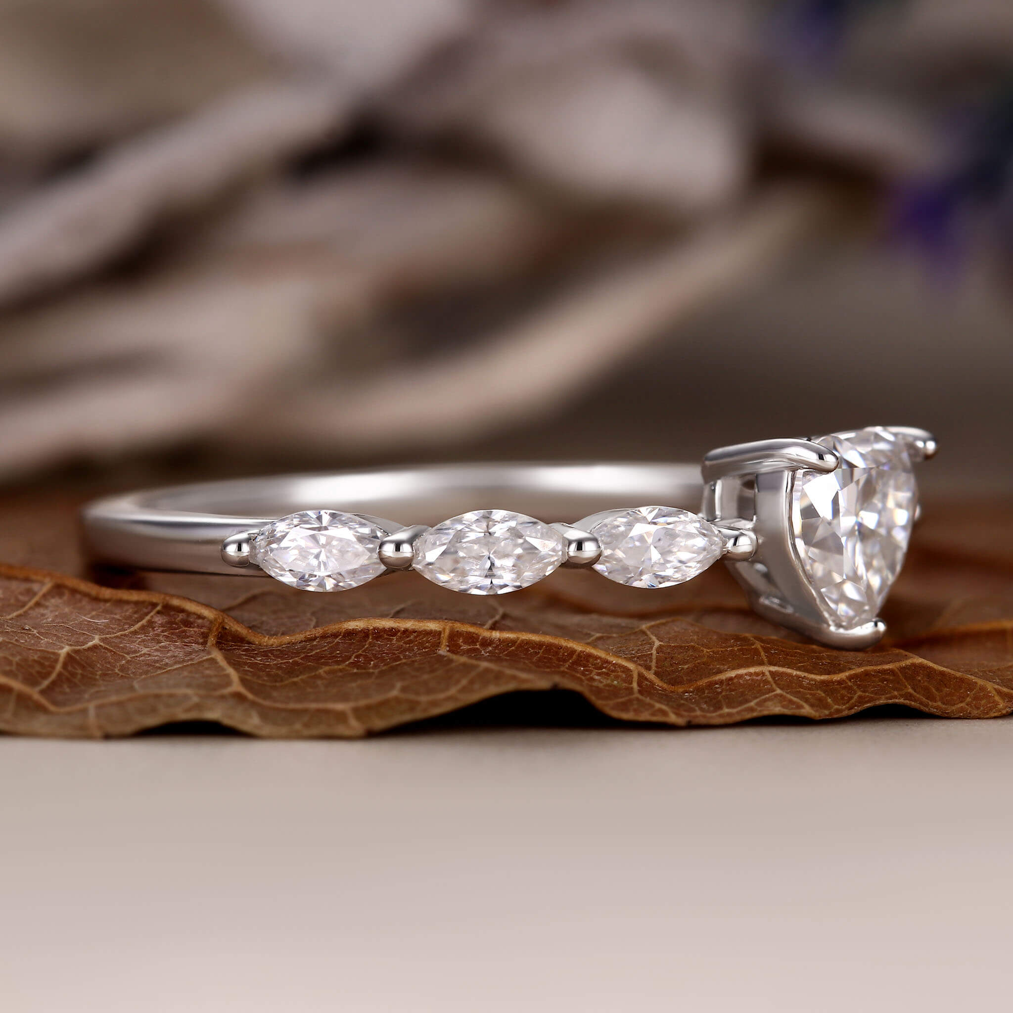 Marquise Sides Heart Moissanite Promise Engagement Ring Solitaire Ring Women Anniversary Gift
