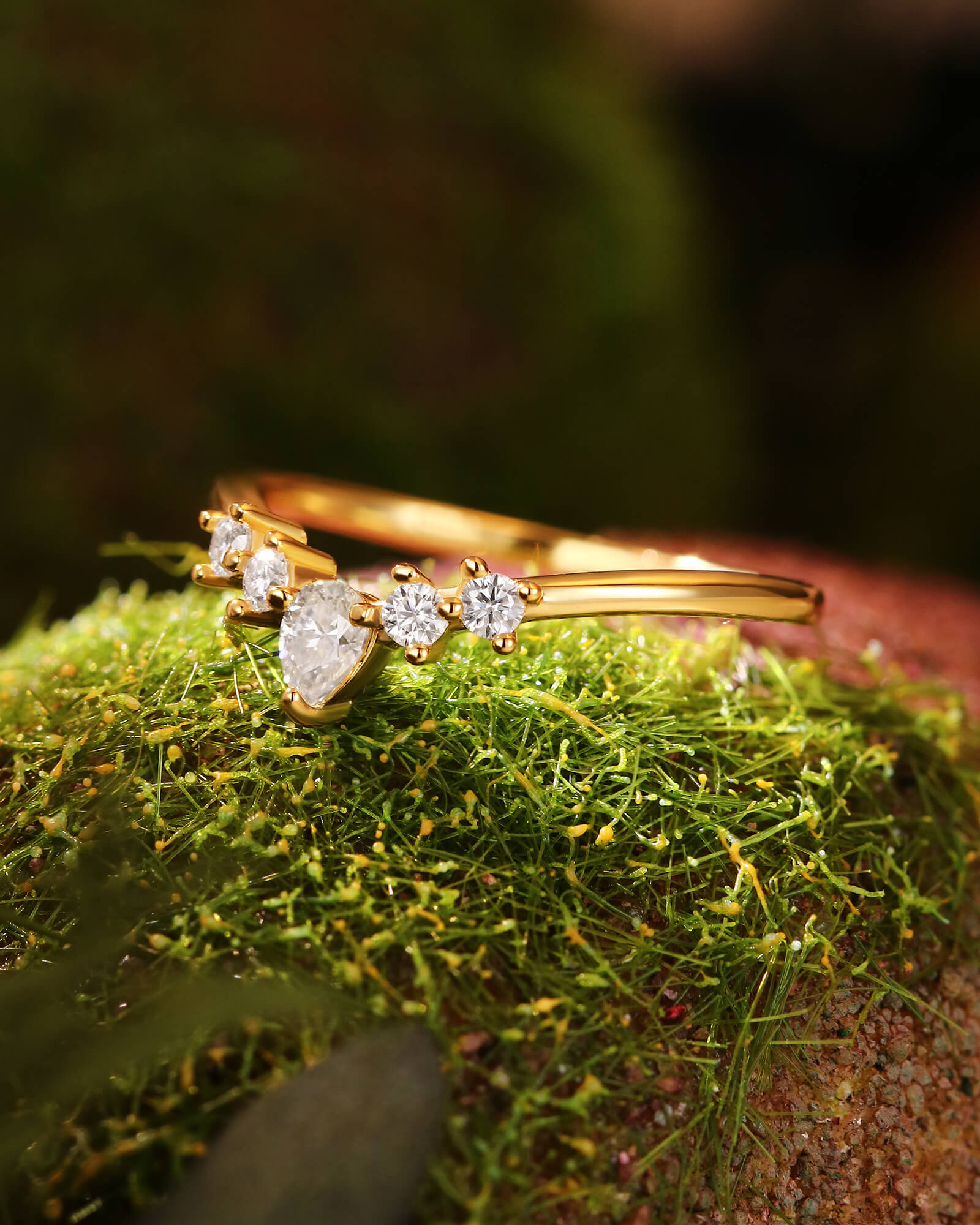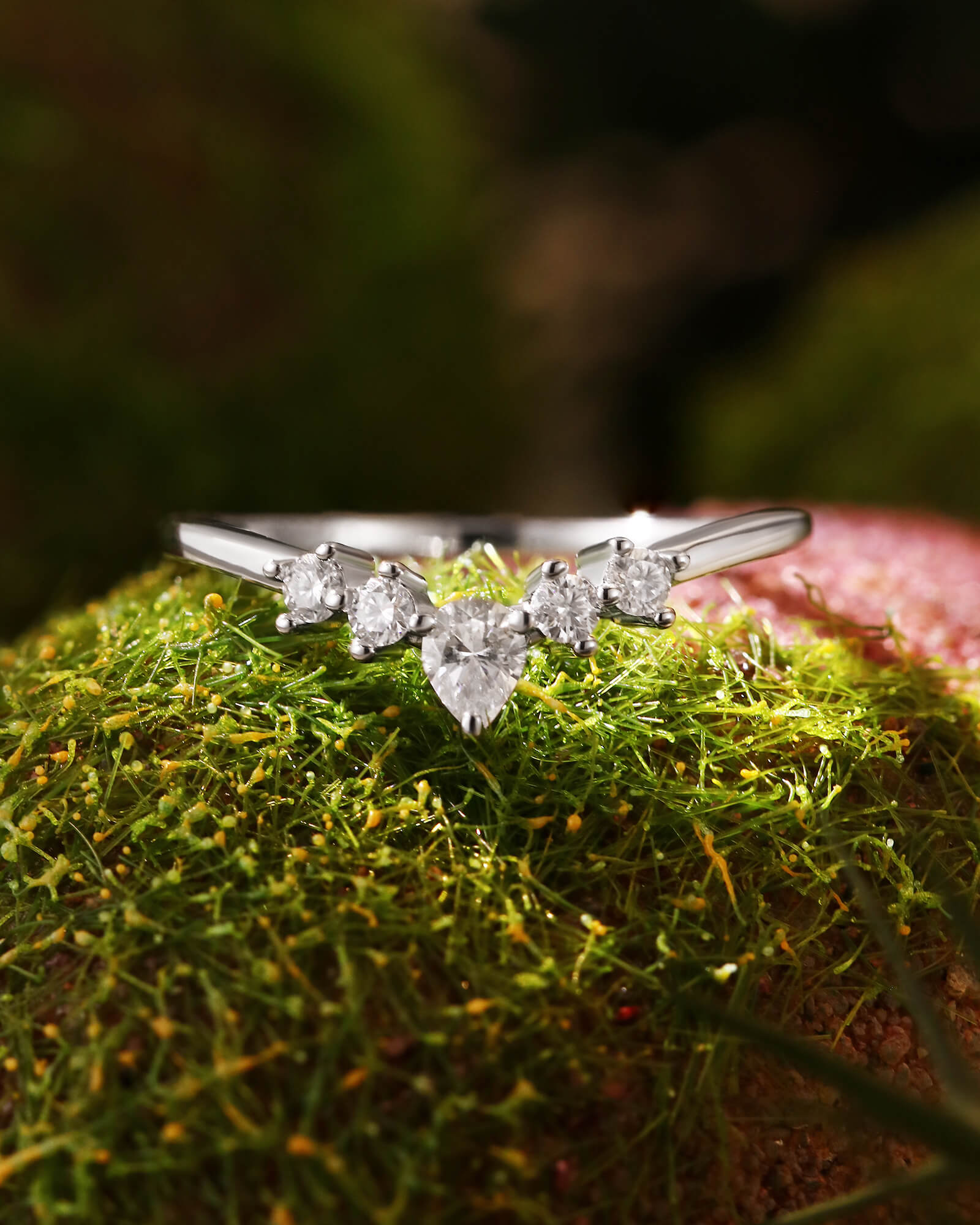 Pear Cut Moissanite Five Diamonds Matching Curved Wedding Band Unique Stacking Ring
