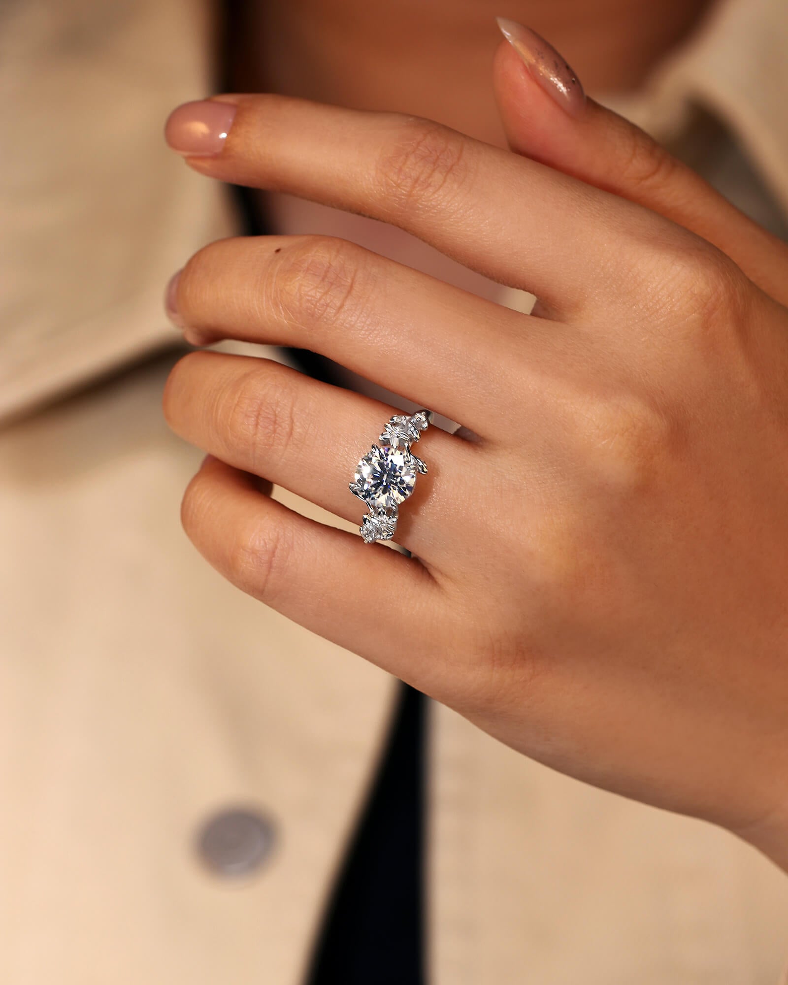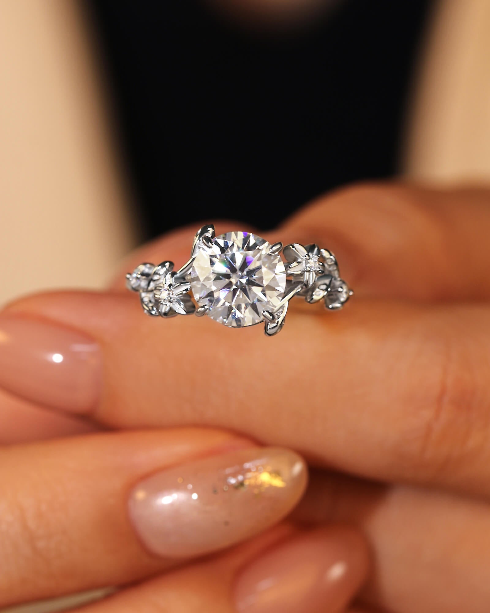 - Side Stone: Moissanite