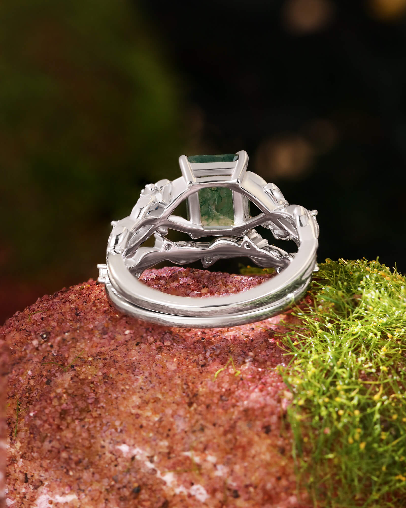 - Center Stone: Natural Moss Agate