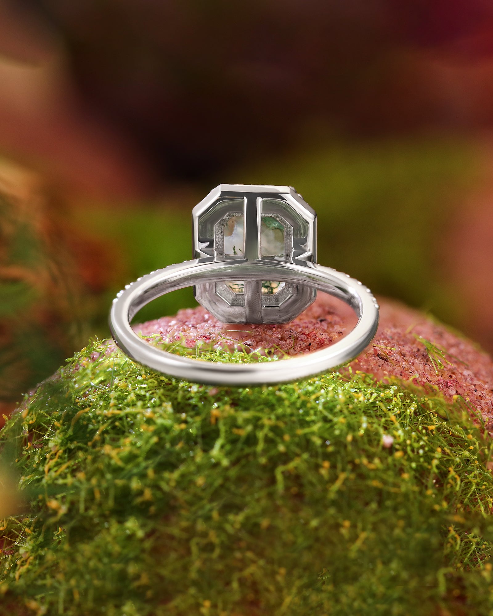 - Center Stone: Natural Moss Agate